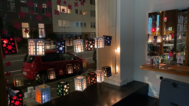 Dank der Martinsfreunde Bilk e.V können Kinder und Ihre Familien in teilnehmenden Läden eine Auswahl der selbstgebastelten Laternen bestaunen UND es gibt auch was zu Gripschen.